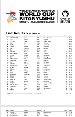 November 2025 - World Skate Kitakyushu, Japan (19e plaats, top 20 check)